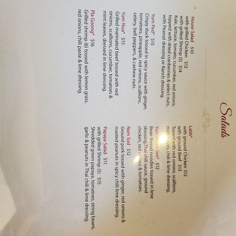 6 grilled shrimp tossed with lemon grass, red onions, chili paste and lime dressing. Spicy.
