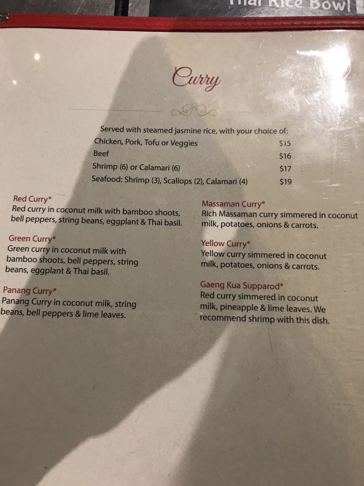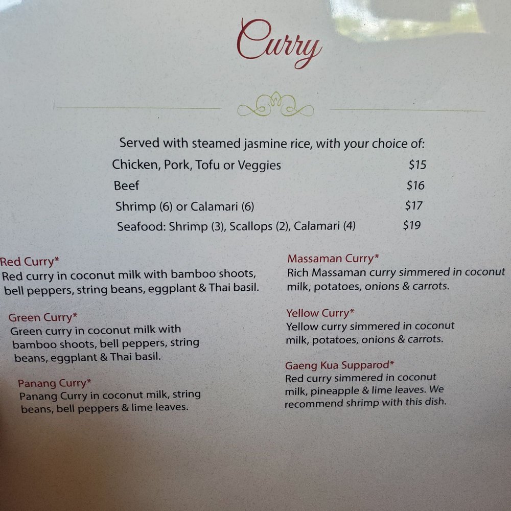 Green curry prepared in coconut milk, bamboo shoots, eggplant, bell pepper, string beans and Thai basil. Served with steamed rice. Spicy.