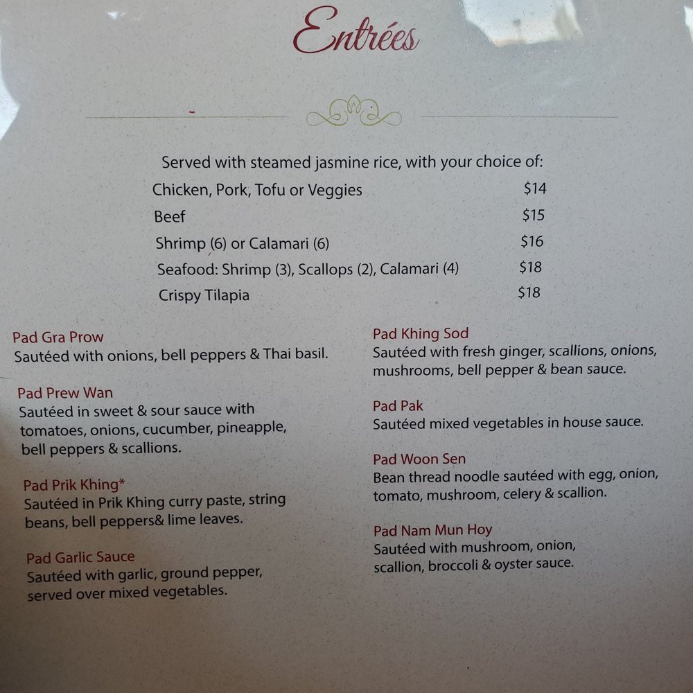 Sauteed onion, bell pepper, Thai basil and Thai chili pepper, served with steamed rice. Spicy.